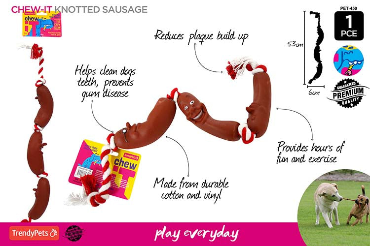 Vinyl Tug Rope Dog toy with Sausages 54cm